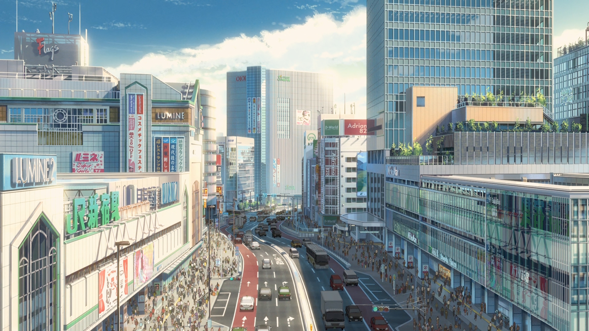 初次听到这个词可能很陌生,但简单解释的话,纹理就是画面中出现的“细节”部分,而举例子的话,新海诚的作品一定是首当其冲的,这种超现实的画风,一切都向着“真”靠近的,一定会有大量纹理细节。