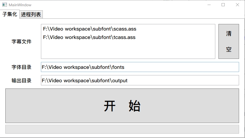 文件夹,将字幕用的字体都丢进去,然后按一下开始就开始进行字体抽取操作了。